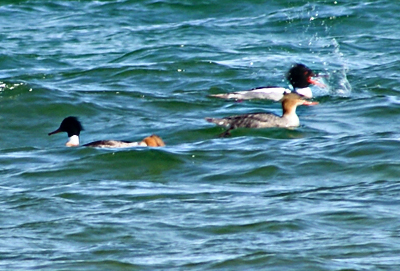 Red Breasted mergansers are birds that have been claimed to be the fastest bird in level flight, reaching speeds of (80 mph),All mergansers look as if they needed to have their hair brushed.